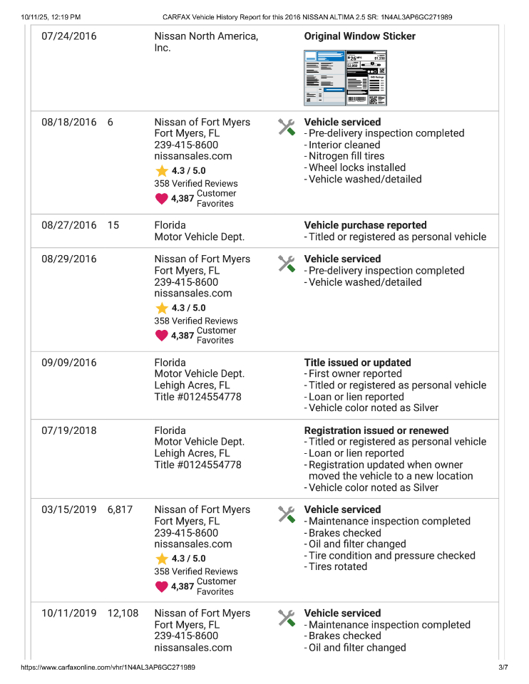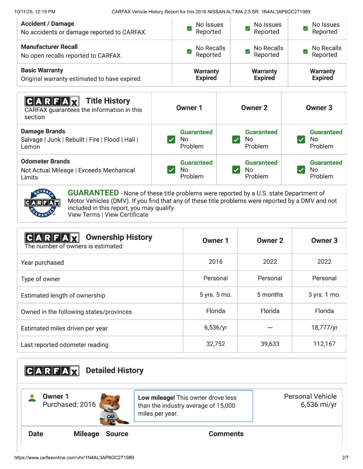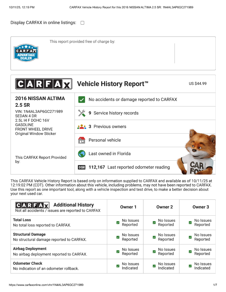 This 2016 Nissan Altima Has Had 3 Previous Owners, 0 Accidents, and Is In Good Condition. See Pics and Walk-Around Video for Detailed Condition.