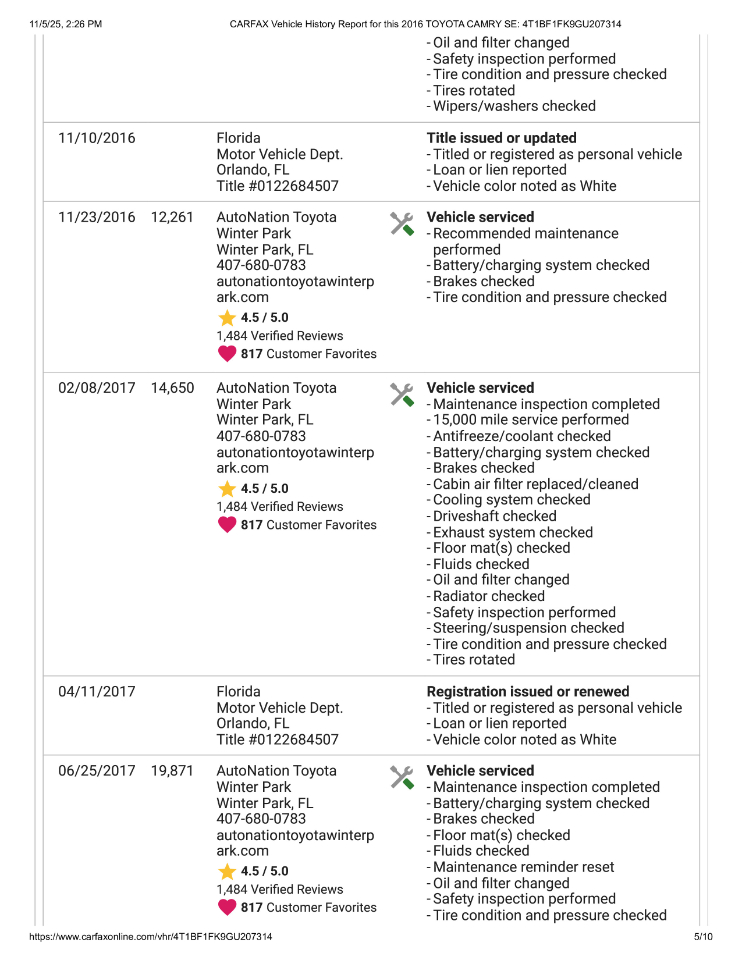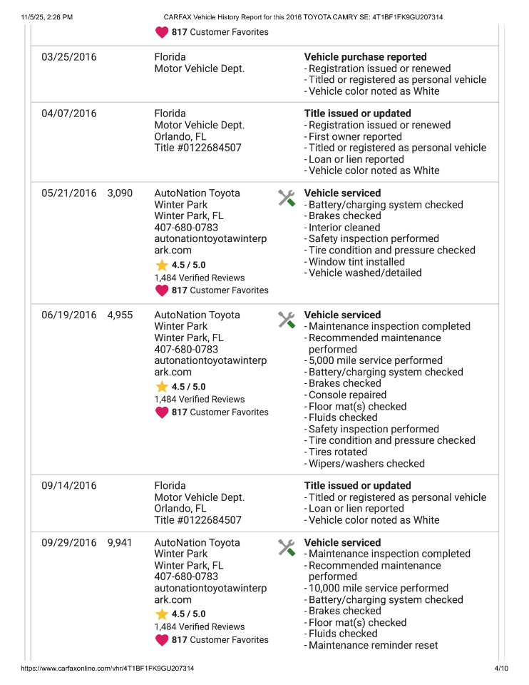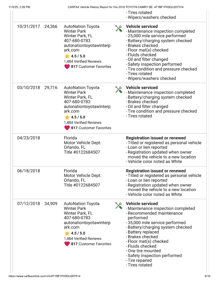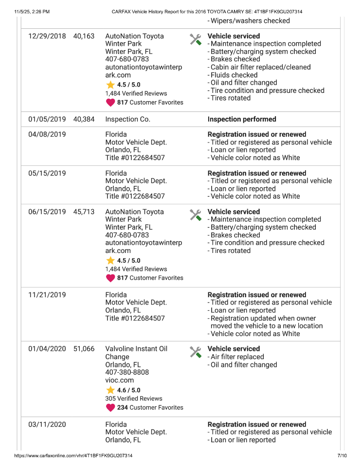 This 2016 Toyota Camry SE Has Had 2 Previous Owners in FL, No Accidents, and Is In Good Condition. See Pics and Walk-Around Video for Detailed Condition.