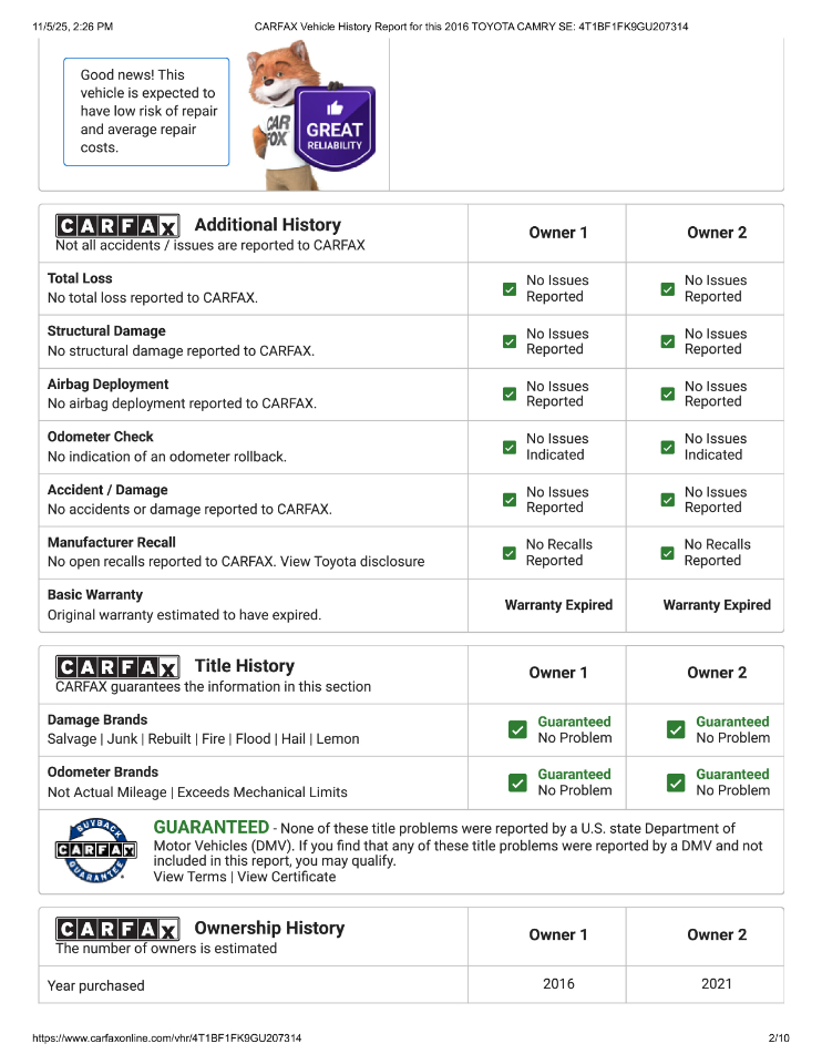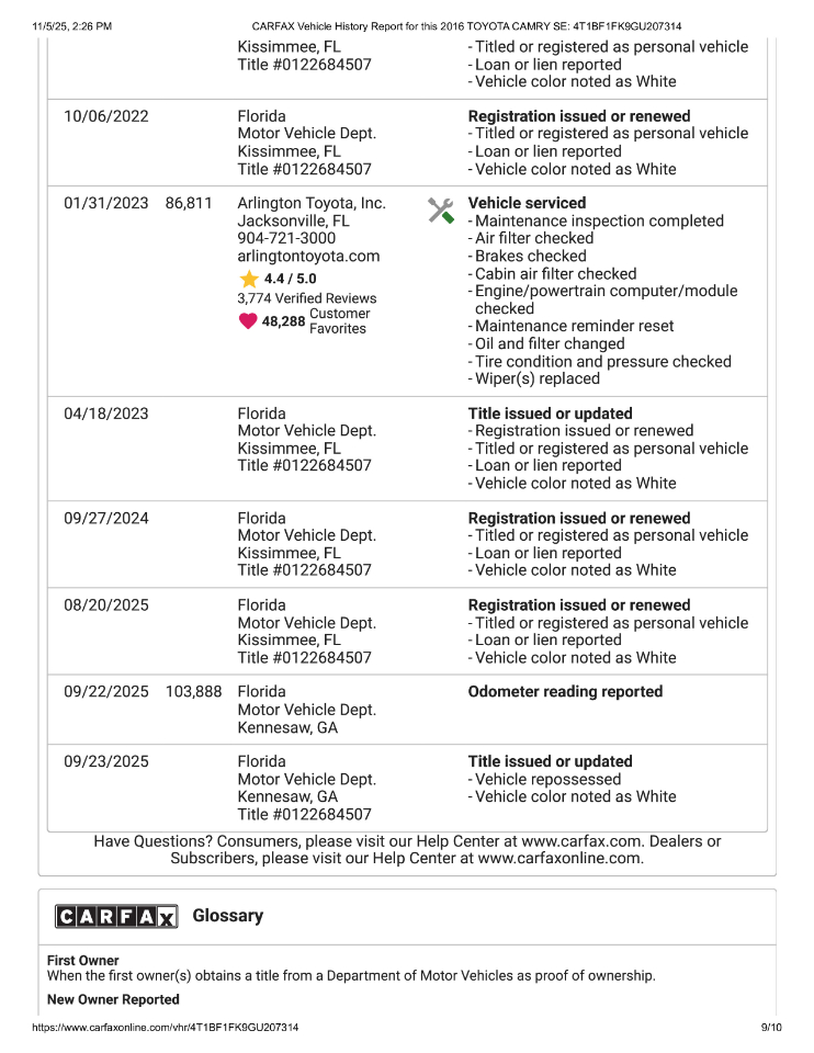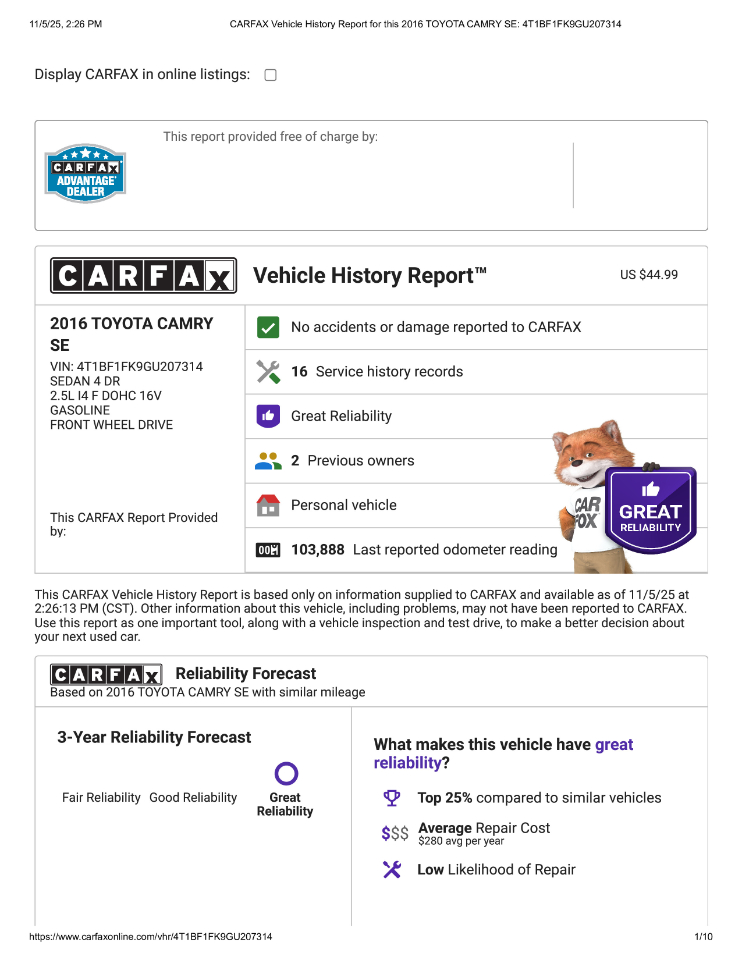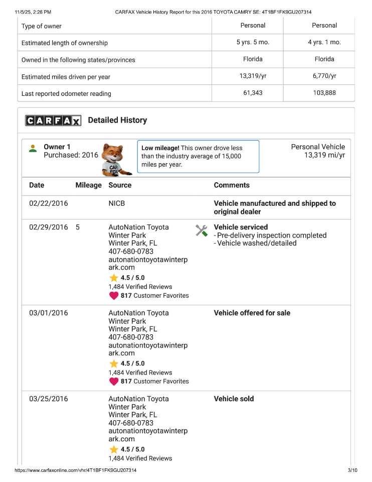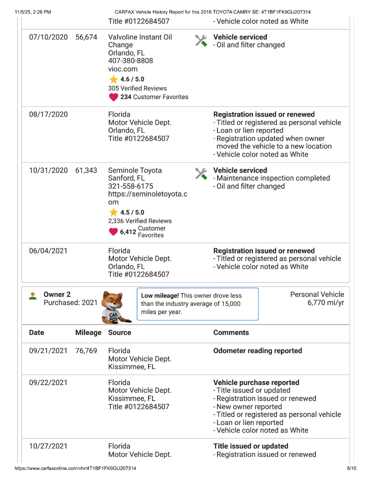 This 2016 Toyota Camry SE Has Had 2 Previous Owners in FL, No Accidents, and Is In Good Condition. See Pics and Walk-Around Video for Detailed Condition.