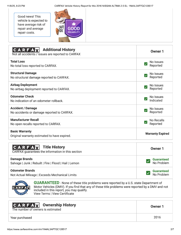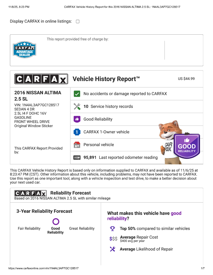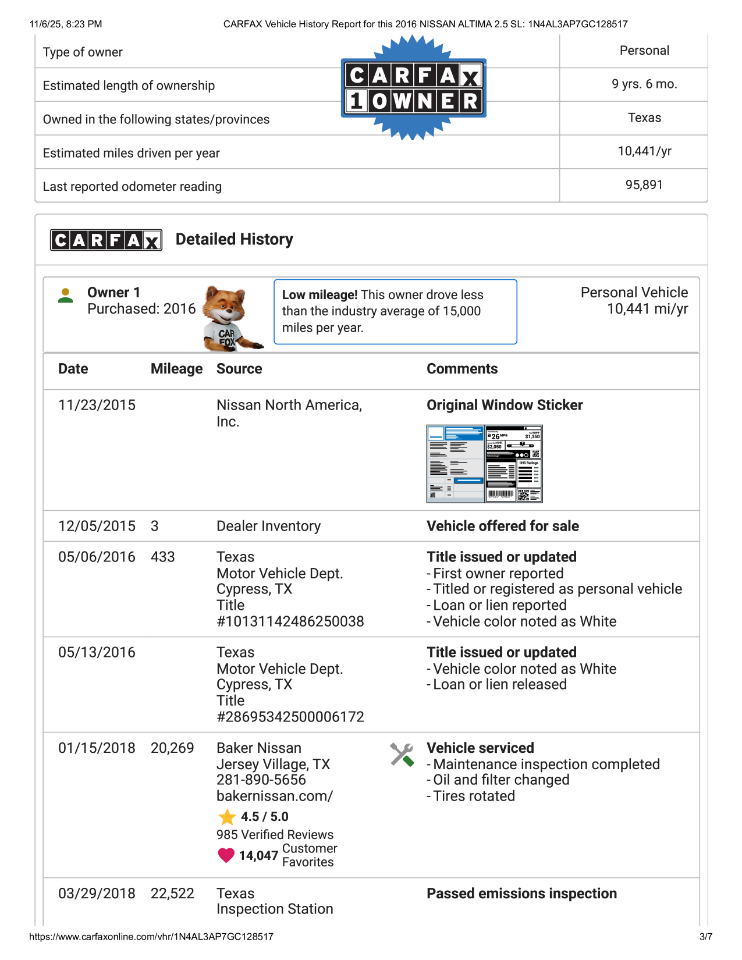 This 2016 Nissan Altima Has Had 1 Previous Owner in TX, no Accidents, and Is In Good Condition. See Pics and Walk-Around Video for Detailed Condition.